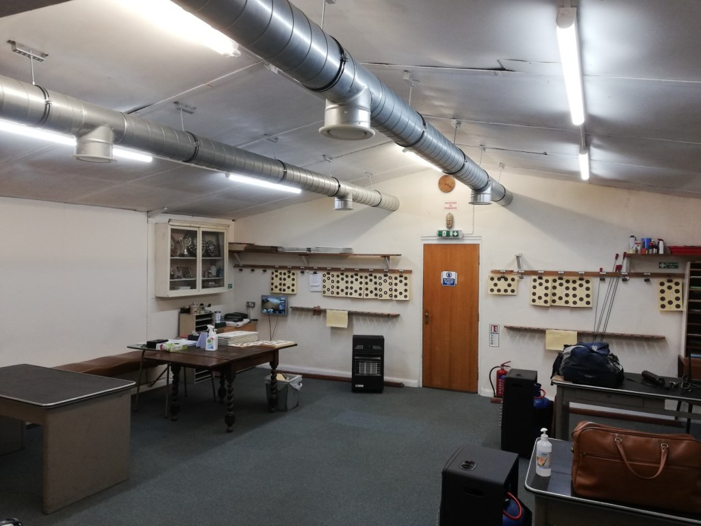 Last week, our electrician (AH Electrical Services) completed the planned electical work at the range. The clubroom now has additional lighting above the side areas, removing all the shadows cast by the ventilation pipes.